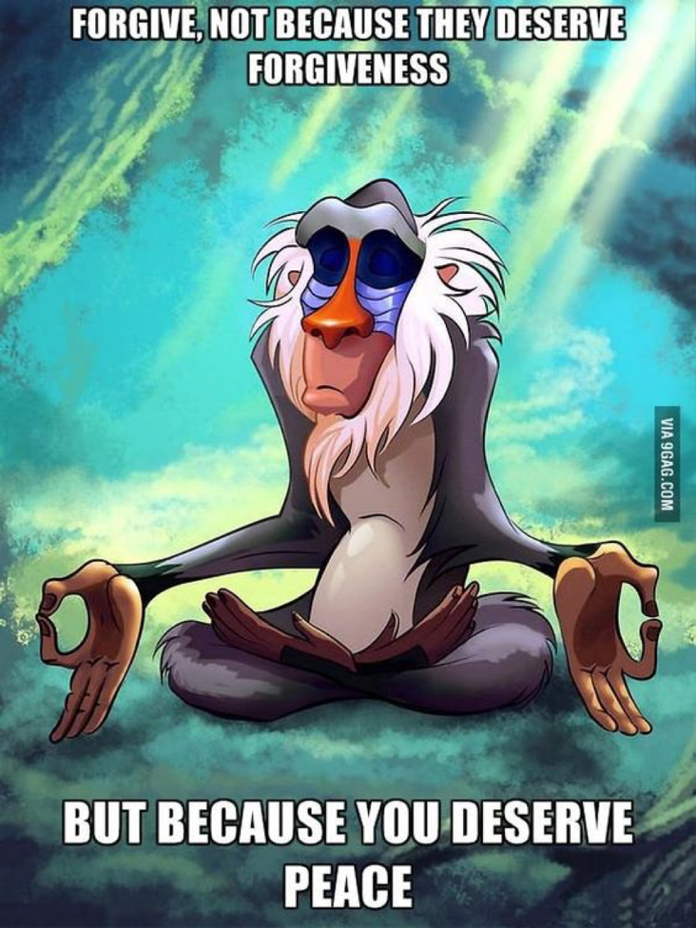 One of the hardest things to do is forgive others. Rafiki got it right with this quote we forgive because we deserve to have peace.