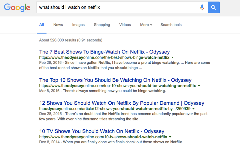 Warning: this only works to give you suggestions if you’ve never watched Netflix before. Sorry.