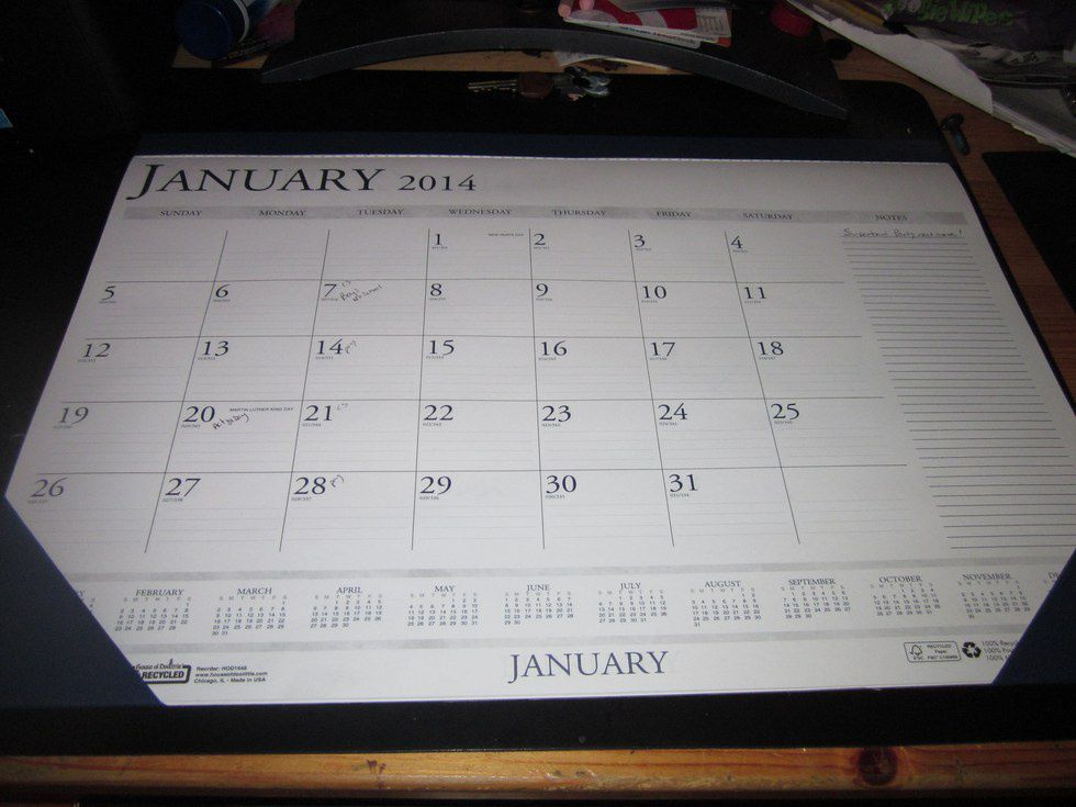 I suggest a desk calendar because it leaves a lot of room to write down everything. It might seem overwhelming to look at all the tests and assignments that are due, but I find that it's nice to see everything written down so all of the assignments and due dates aren't swirling around in your brain.