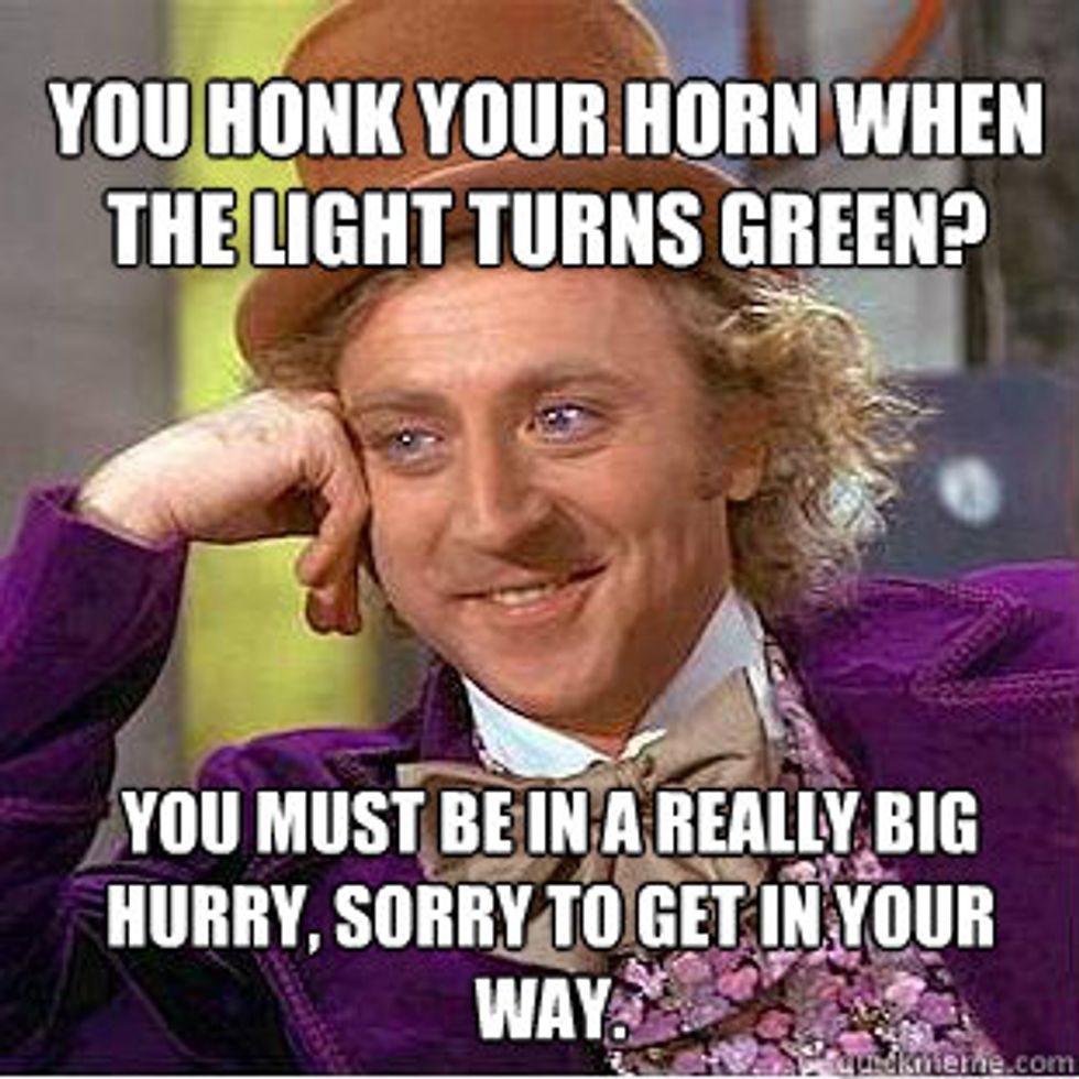 I understand the use of a car horn. If someone cuts you off, please use the horn. If someone DOESN'T USE THEIR BLINKER (refer back to #1), please use your horn. However, if it takes someone less than 3 seconds to start driving when the light turns green, please don't be ignorant and lay on your horn. If someone is driving the speed limit and you're used to going 20 over, please don't lay on your horn. As previously stated, please be respectful because you're not the only one on the road.