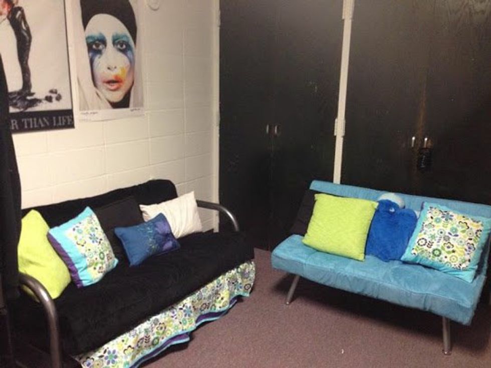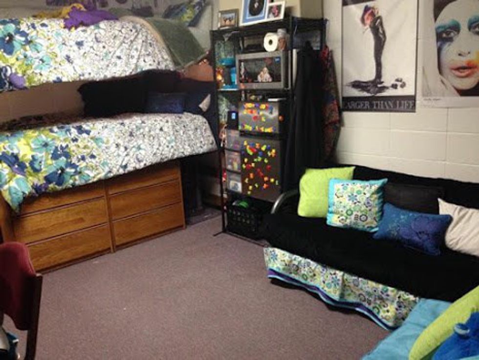 My dorm had 2 futons that could seat 3 people each, a ottoman, a beanbag chair, 2 desk chairs, and a bed lowered to couch-level. My roommate and I could basically fit our whole floor in our dorm room! This made it really convenient for people to come in and hang out.