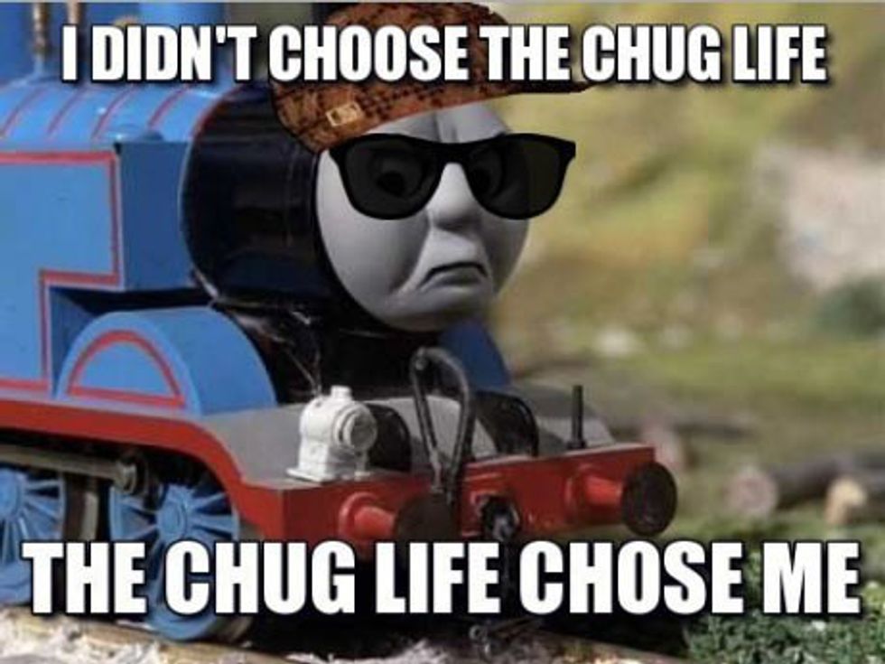 Look, the way I see it, I work hard all week long: emailing people, talking with teachers, planning events, doing homework, running to classes, going to clubs—the list goes on. So if I want to watch "Thomas & Friends" where I don't have to worry about keeping up with a dramatic storyline or just watch Scooby-freakin-Doo bust some bad guys in masks then I will! I need some kind of entertainment that's easy to follow because my brain literally cannot handle any more information, and if I try to shove any more in my head might start doing this.