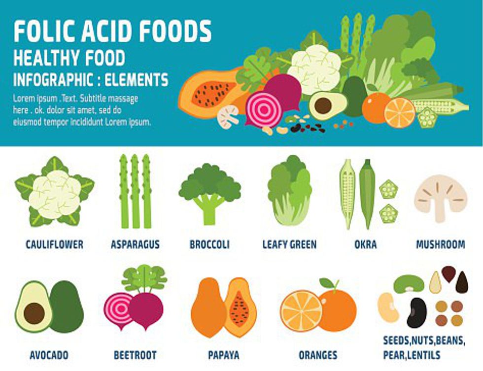 Folic acid is the chemical folate. It is found in many different types of foods, such as multivitamins, leafy greens, vegetables, beans and many more. When the chemical is in food it is called folate. Folic acid is hard to absorb through foods because how the digestive system works. Only half of the amount of consumption is absorbed. The biggest thing to remember is that absorption is different for everyone and it can depend on how the food is cooked or what it is.