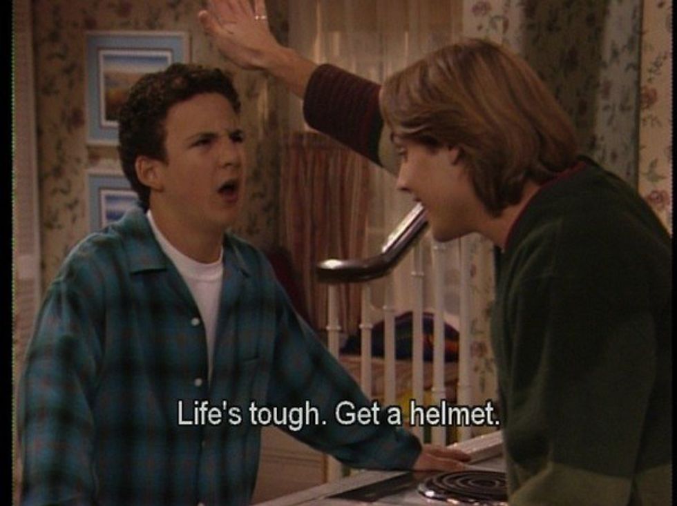 The earlier you learn this lesson, the better. Through the wise words of Eric Matthews, we were taught life is hard. It won't always be rainbows and smiles, so be prepared for the hardships and learn to face them "head on." Learning to deal with problems is a part of growing up and "Boy Meets World" tells us to get ready for them because this is just the beginning.