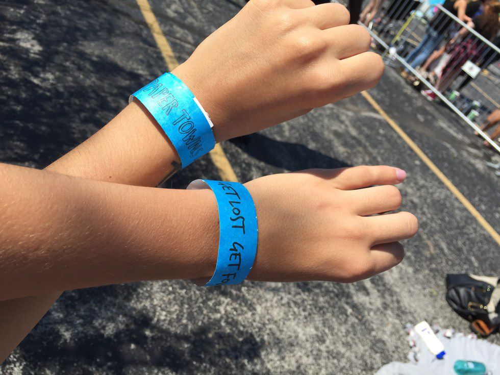 FINALLY, around 11:20 a.m., I started seeing 'Margo maps,' the red carpet being rolled out and blue wristbands being distributed by actual tour staff members in all black. It was finally becoming real! We shortly got our wristbands and continued to sit.