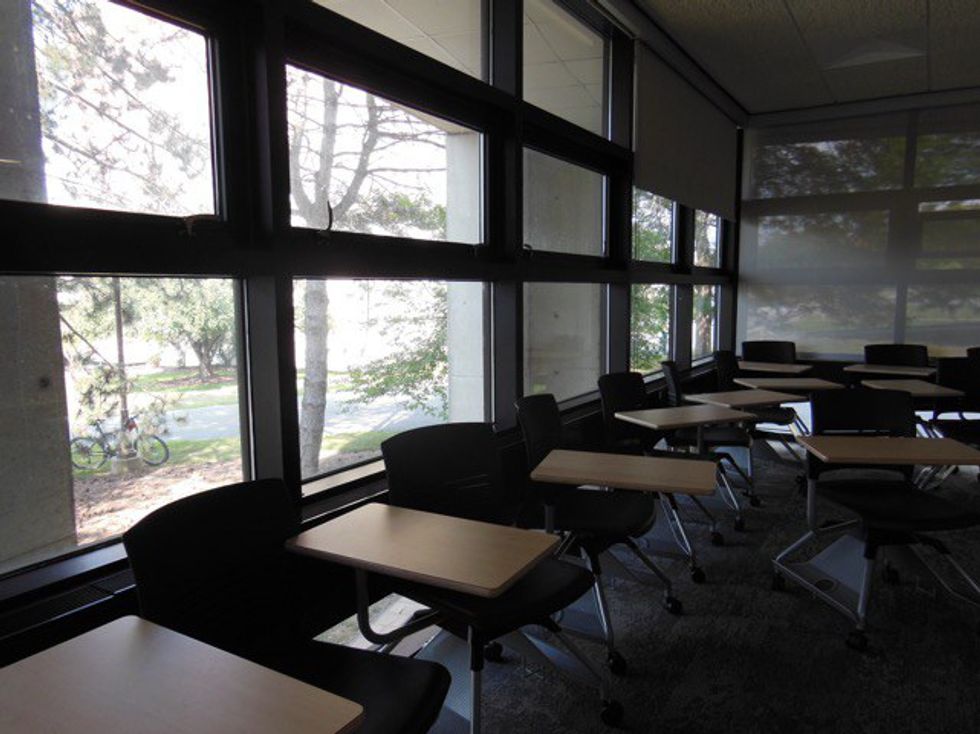 Located at the end of the hall on the first floor of Smiddy, this classroom features three walls made up almost entirely of windows. Talk about distracting. The room houses a variety of classes and the Peer Tutoring Center. So whether you’re admiring the beautiful weather outside or appreciating the winter from the warmth of the indoors, this room is perfect for wasting away class time staring out the windows. Just don’t forget to look at the board every once and a while.