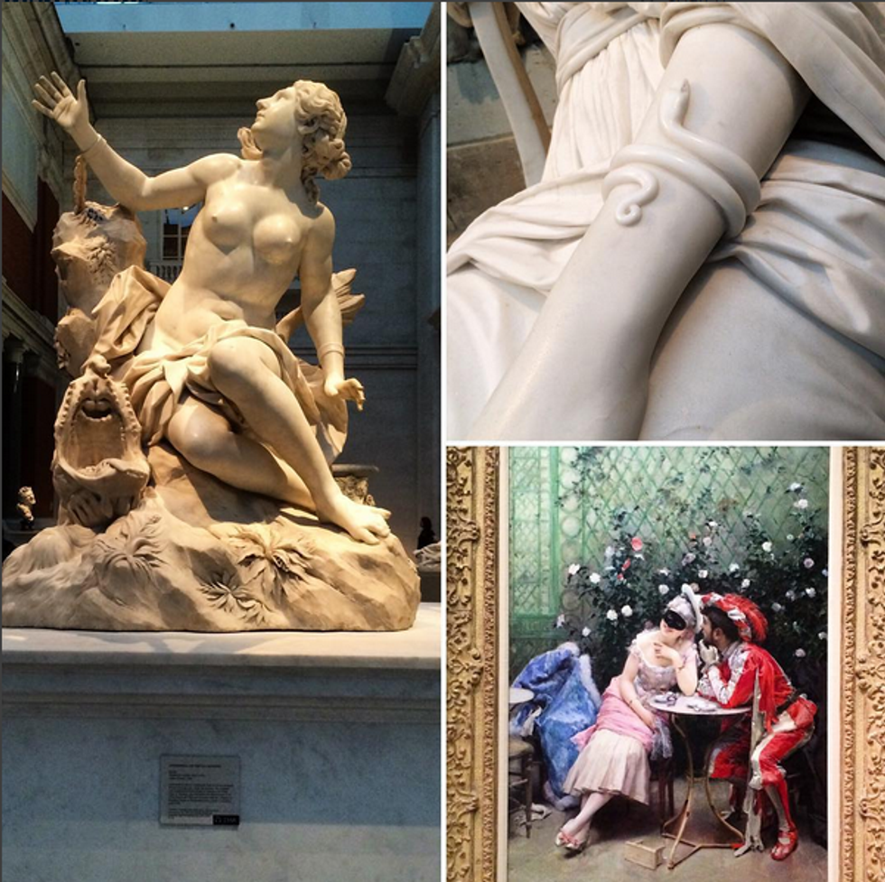 The museum is an obvious one, of course, but it was still incredible. The Metropolitan Museum of Art is massive. I can't wait to go back and see the rest! Italian sculpture, American sculpture, European paintings and armor, Fabergé eggs. I felt so small looking at some of this artwork, and I found myself wondering what the artists were thinking about as they created these pieces. I wish I could sit down and talk to each of them about it!In my picture above, the image on the left is of Andromeda. I wrote a short story based on the myth about a year ago, and then of all the sections in the Met, we happen to visit the one with this sculpture. It reminded me that humans are constantly inspiring each other across time and culture. I've seen this in other people's works, but never so strongly in my own, and it was incredible.