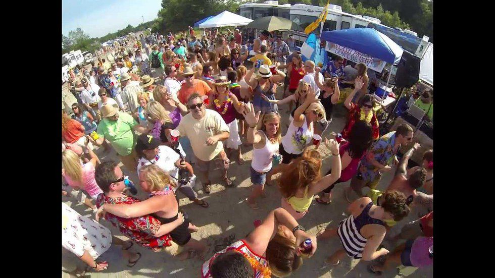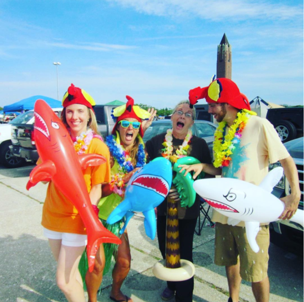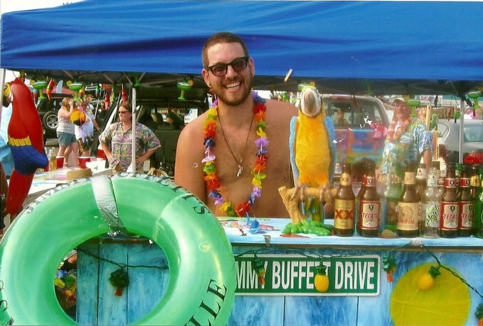 People get there real early to set up because they are going all out. They empty their liquor cabinets and their mini fridges bringing tons of bottles that they set up under their tents. They put together tiki bars, kiddy pools, games, and stimulations. Some people fill the beds of their trucks with sand and stick beach items in it and others fill there’s with water to make a little pool to chill in. You will find some people walking around in coconut bras and hula skirts with parrots (real or fake) that is for sure!