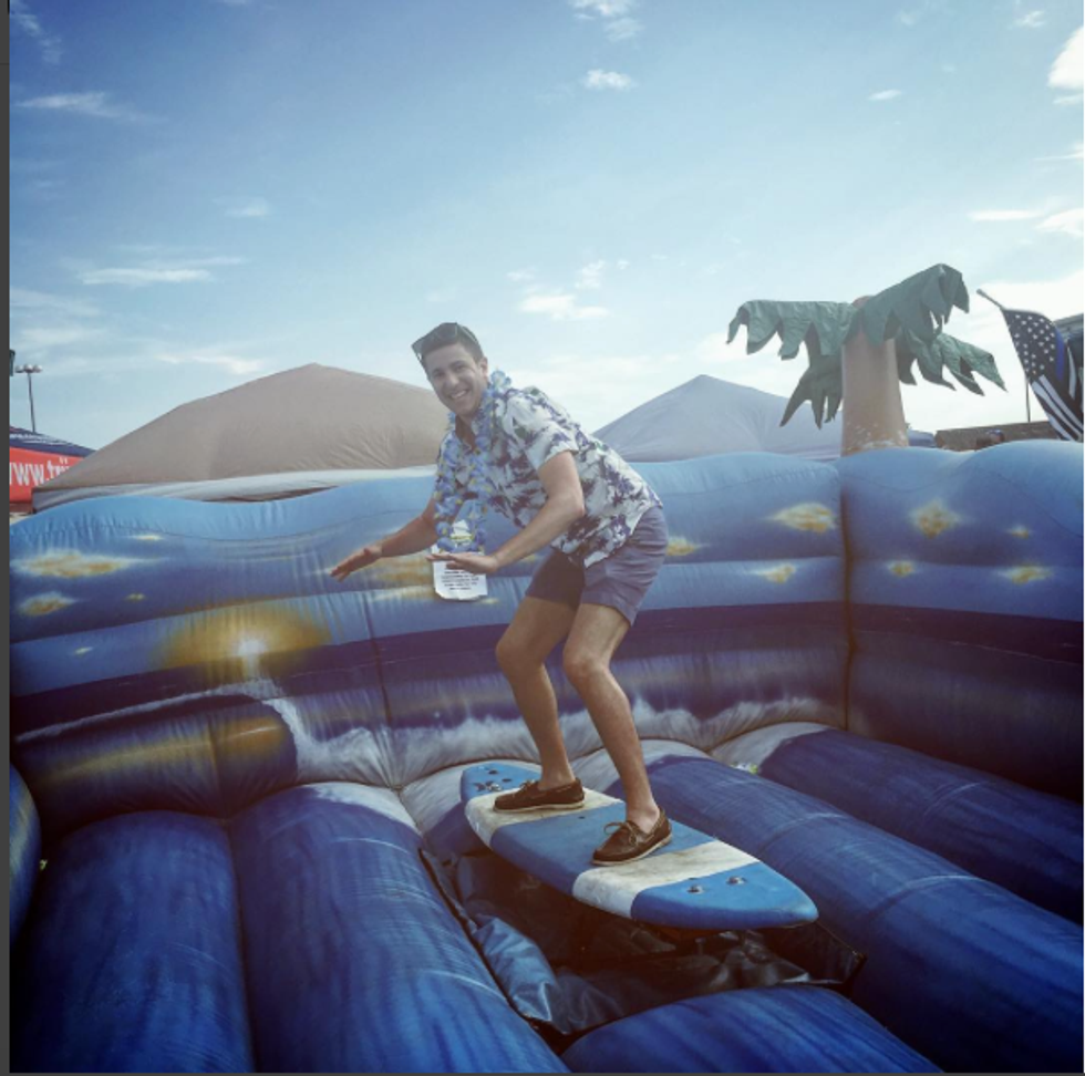 Someone brings a huge blow up surfboard stimulation. If you go to the Jimmy Buffet tailgate and don't do this did you really go? This was one of the best parts of the tailgate; you can hop up there alone or with a friend and try to stay on as the guy makes the surfboard rock faster! It is a ton of fun!
