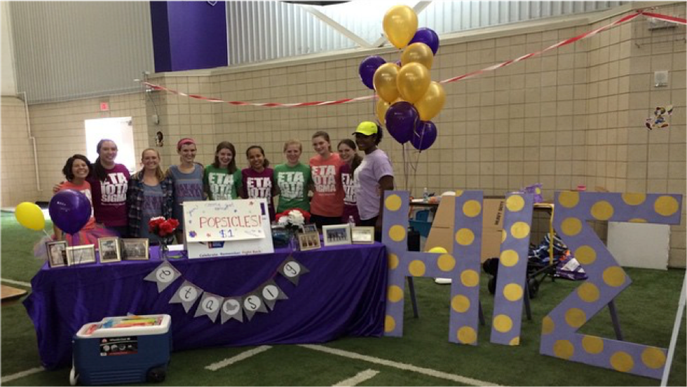 Just a few of our most recent events have included: tailgate and roller-skating mixers, a Great Gatsby formal, a hiking trip, Big/Little reveal, sisterhood retreats to Oklahoma and Dallas, and Moms/Dads Weekends. We also have an annual Ultimate Frisbee tournament where we raise money for the American Cancer Society. In the spring, we raised over $3,000 and completed hundreds of hours of community service as a chapter.
