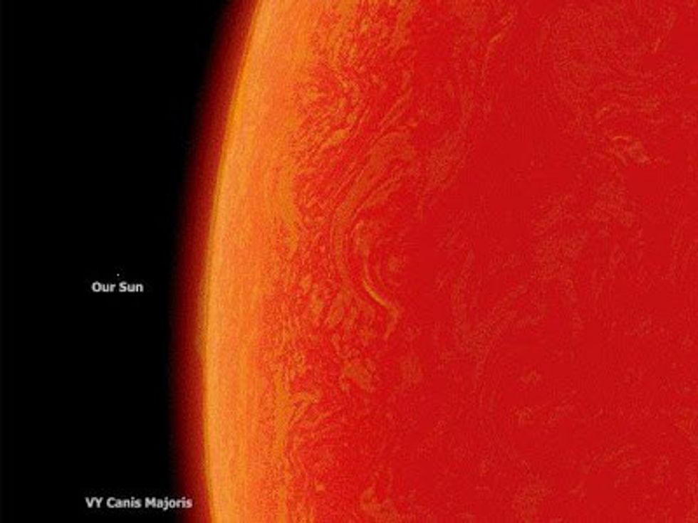 If you ever feel small and insignificant, do yourself a favor and don’t Google search how many Earths can fit into Jupiter. The answer is about 1,321. Let’s take that a step further. 1000 Jupiters can fit into the Sun. Still not feeling small enough? Then let me introduce you to VY Canis Majoris. Canis Majoris is a red hypergiant, which doesn’t sound that cool—oh wait it TOTALLY DOES. It’s also one billion times the size of our sun. No big deal.