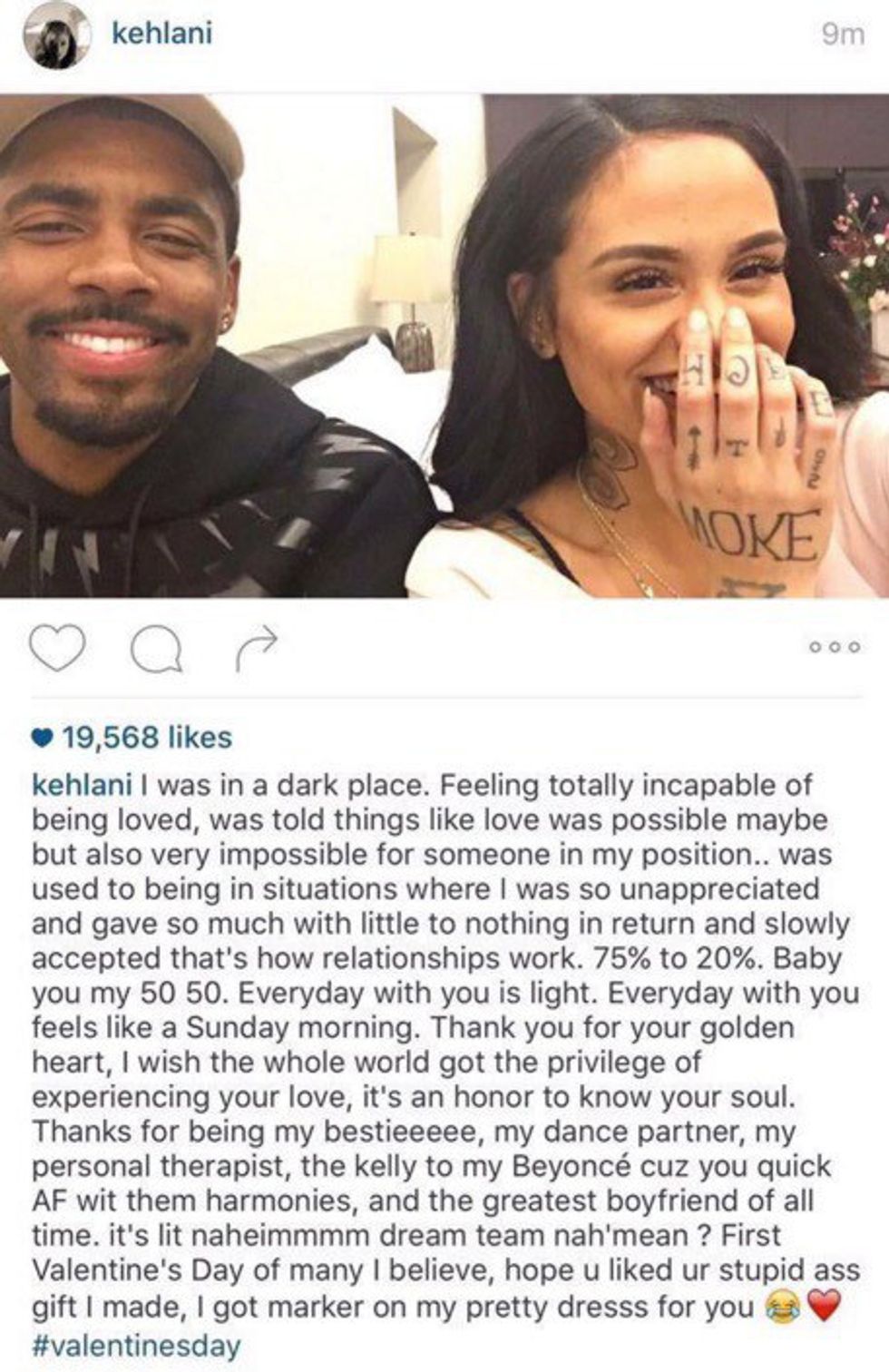The story begins about a year ago, when Kehlani was dating a Canadian rapper who is signed with Drake’s record label and goes by the stage name Party Next Door. All seemed alright until the two had a nasty break-up that flooded social media. Party Next Door even recorded a song addressing the break-up shortly after. It wasn’t too long until rumors began to arise, hinting that Kehlani was dating the rising NBA superstar Kyrie Irving. These rumors were proven to be true through one of Kehlani’s Instagram posts on Valentine's Day.
