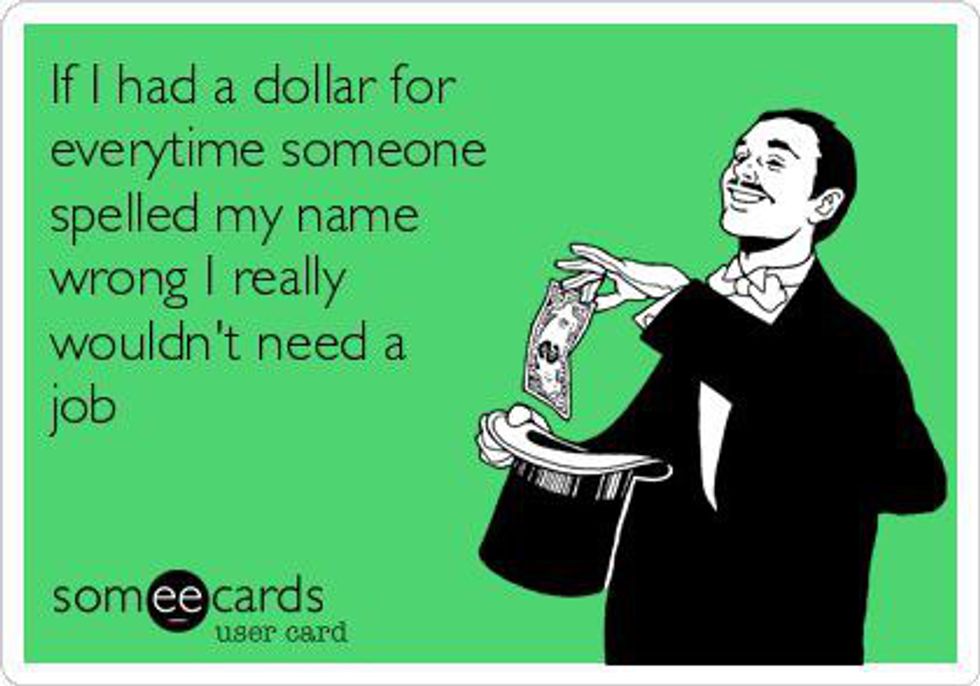 He or she gets to your name on the attendance sheet; pauses for five to ten seconds; darts his or her eyes back and forth quickly, sure that there must be a mistake because that can't be a real name; sits up nice and tall, ready to show off and get every syllable right; then completely butchers your name as if it came straight out of a biology textbook.Your name is always spelled wrong.