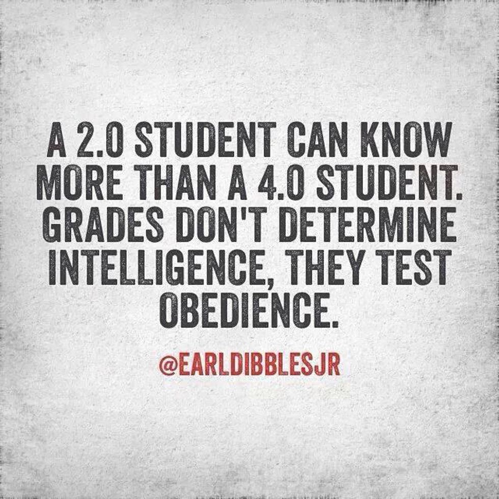 So many of us spend a lot of our time beating ourselves up over a C-, constantly worrying what people will say if they know on the other side of our test is a big fat F, wondering if maybe because we got a D in some of our classes if school is even the right place for us. But why? Why do we believe people when they tell us our grades mean everything when it comes to our futures? Why do we feel the need as students to use grades as a form of competition in schools? Do we need to feel a sense of self-esteem when comparing our A to a peer's D?
