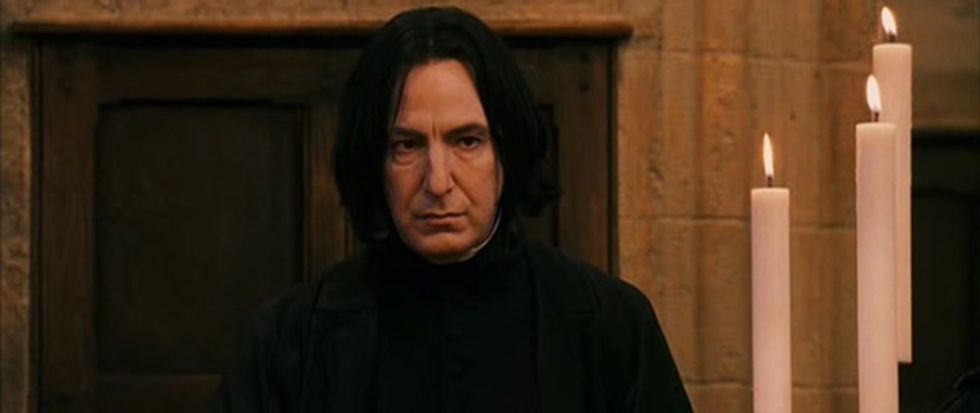 Harry spends the entirety of the first book convinced that Snape is trying to kill him and steal the sorcerer's stone. While we don't learn too much about Snape in this first book, we do find out that all the times Harry thought Snape was trying to kill him he was actually keeping him alive. However there is no denying that Snape isn't the ideal person to interact with, which illustrates the idea that no person is fully good or fully bad. And seriously Harry, before you accuse Snape of trying to kill you, do us a favor and read the seventh book. RIP Alan Rickman.