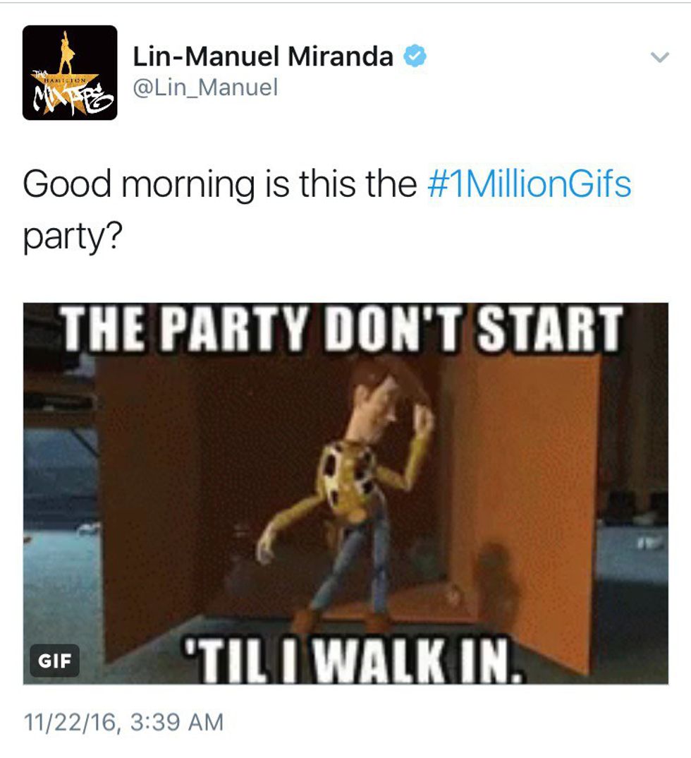 5. He hit one million followers on Twitter and started the best #1MillionGifs party the internet had ever seen.