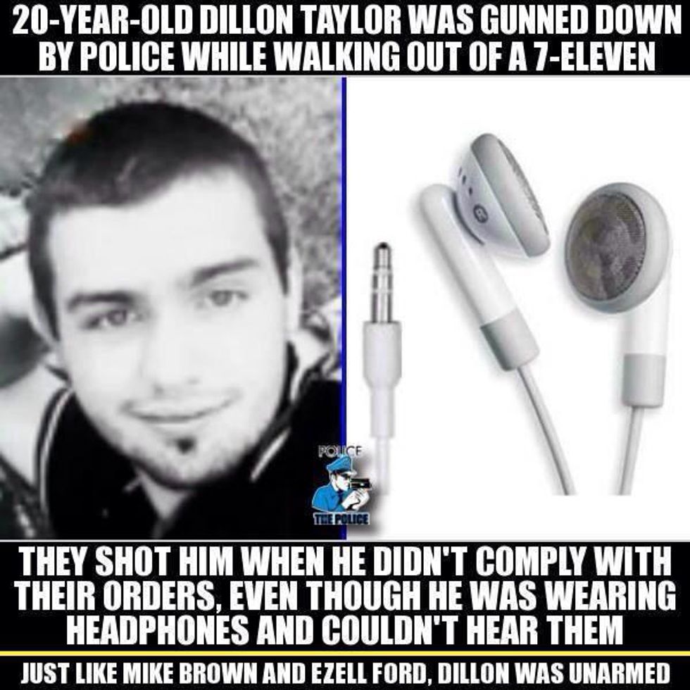 While the riots in Ferguson raged on, far away in Salt Lake City, UT on August 11 (just 2 days after Michael Brown's tragic death) 20-year old Dillon Taylor, along with his brother and cousin, walked out of a convenience store and faced the same fate as Brown. Wearing headphones, listening to music, minding his own business, and not breaking a single law, he fails to stop walking when an officer (who is behind him) orders him to stop.