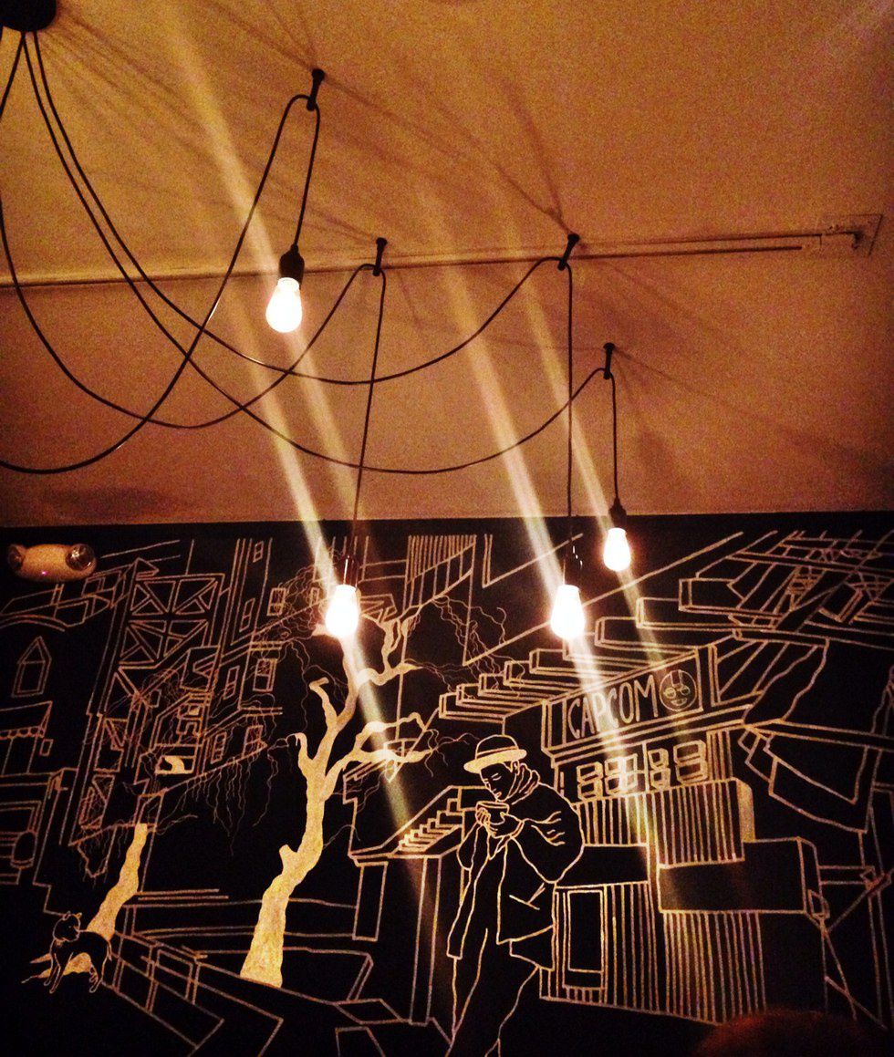 This small but charming restaurant has a modern urban feel with artistic walls and dim lighting. When dining here you can choose to share a large table in the center of the restaurant with strangers, sit at more private tables for four, or eat by the bar style seating at the front window. The restaurant can be crowded during busy times, around seven or eight in the evening, but it is open late and accepts customers up to 15 minutes before closing time. The staff is very friendly and nice but sometimes is not the most attentive ever.