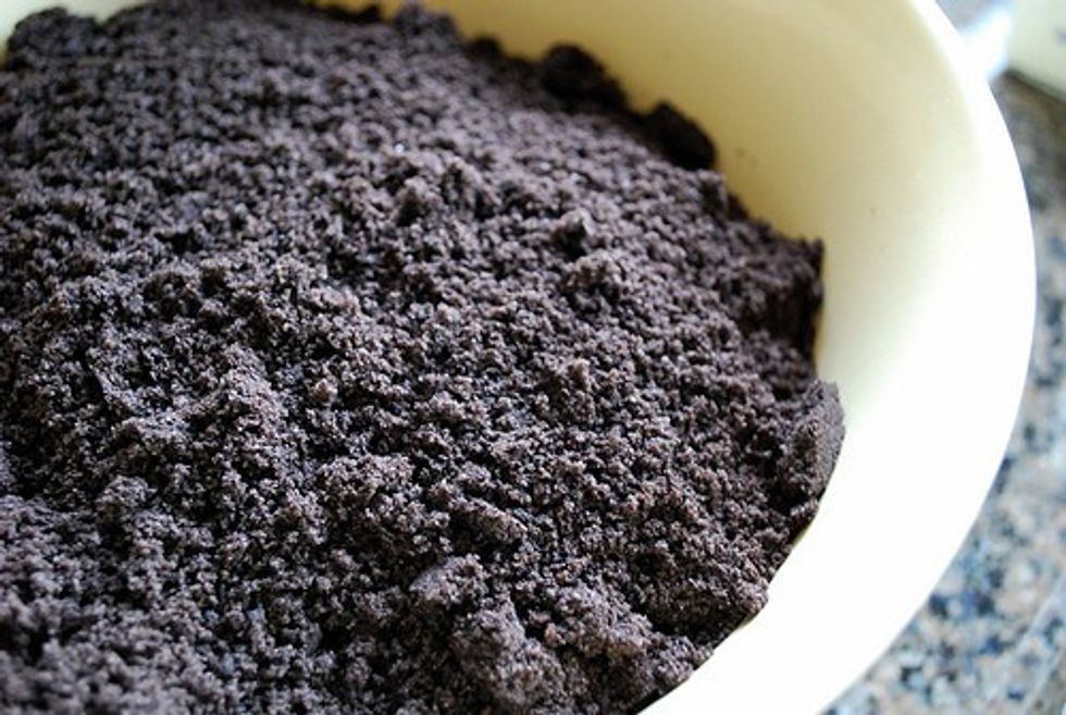 But if you don’t have access to a grinder, I have also accomplished crushing them by putting them in a gallon Ziplock bag and using a rolling pin. It’s the same idea, they just might not be as fine as in a grinder. Once you have all of your Oreos into a fine powder without lumps, put them in a large bowl.