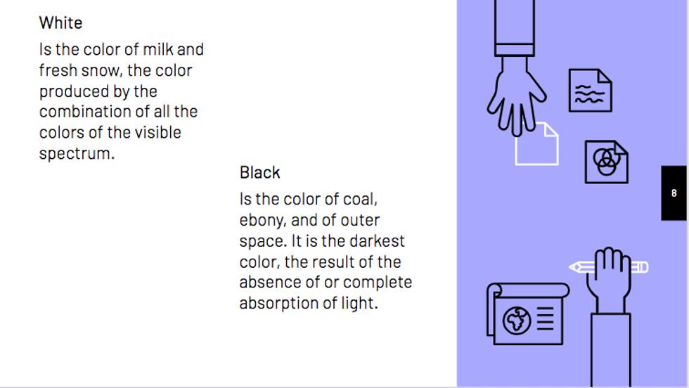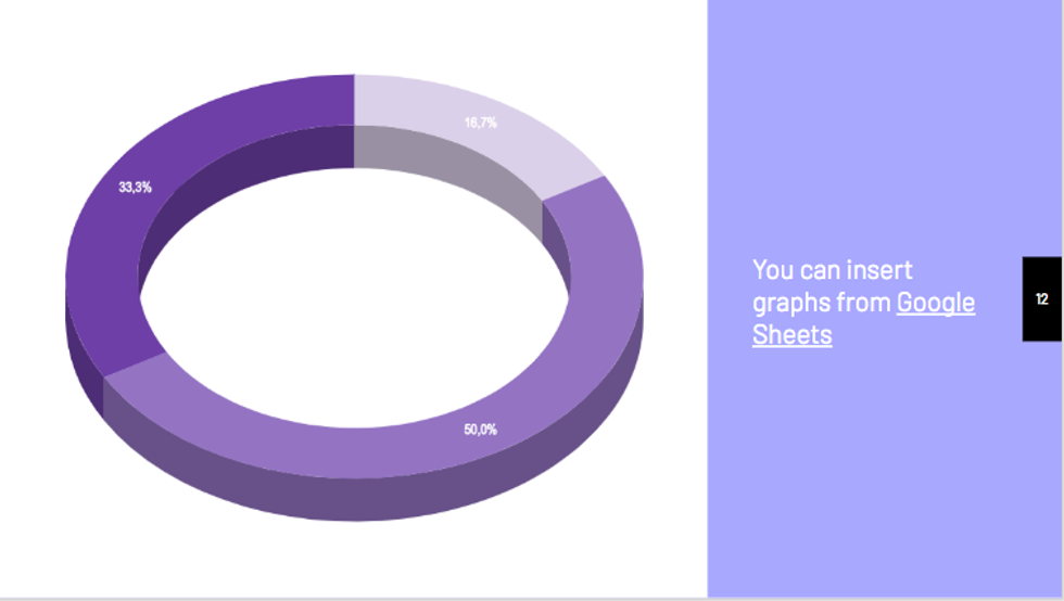If you just pick the first theme that pops up on Google Slides (or none at all), your professor and anyone you present to will see that you didn't make an attempt to make your presentation visually pleasing. Instead, try importing a theme or creating your own. It only takes a few minutes and will make your presentation immediately look ten times better. A site I like to use is SlidesCarnival, where you can find free, creative themes for a variety of presentations to export to Google Slides or Powerpoint. You can also use the themes provided on Google Slides, but I suggest that you tweak the colors and fonts slightly, as multiple other people will be using Modern Writer or Marina as well (as I, and likely you, know from experience).