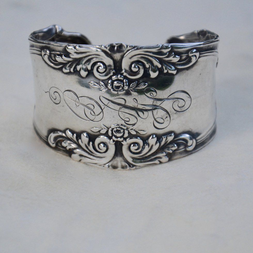 The Victorian Era began the prevalence of the modern monogram with three letters. This time period saw monograms becoming a sign of the upper class and aristocracy. These people started monogramming everything, from table linens to silverware, glasses, and china. Having this ability to personalize such everyday objects gave prestige to the upper classes. The image below is a Victorian Era Tiffany and Co. silver cuff bracelet with the three-letter monogram.