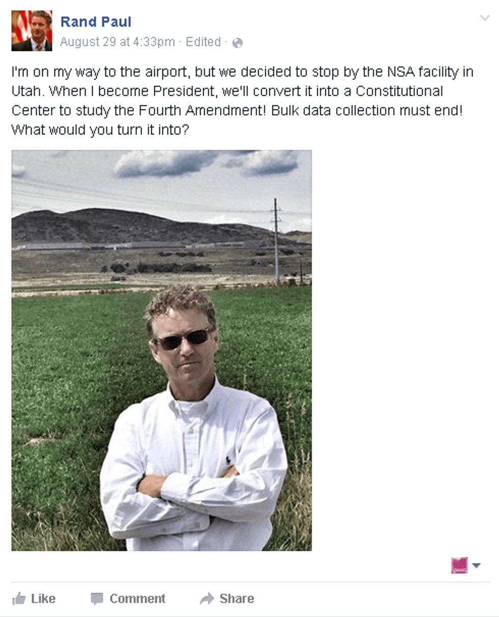 In his electoral campaign and during the Republican candidate debates, Kentucky Senator Rand Paul has advocated the security the Fourth Amendment provides, or should provide. Paul's cause got especially heated when he and New Jersey Governor Chris Christie butted heads during the party's second primetime debate, with Paul highlighting the NSA's intelligence gathering as "searches without warrants..." Again, Glenn Greenwald, the man standing atop the tip of the Snowden iceberg, published the NSA's misuse of the PRISM surveillance program, "allow[ing] officials to collect material including search history, the content of emails, file transfers and live chats". Email and search engines- AOL, Yahoo, Google- to the techno giants- Apple, Microsoft- and social media providers- YouTube, Facebook, Skype- the confidentiality of their users had been kicked down. More astounding is that it was done without their knowledge. Furthermore, the major phone companies, one time or another, had been issued gag orders for personal phone records, Greenwald specifying Verizon in this case.