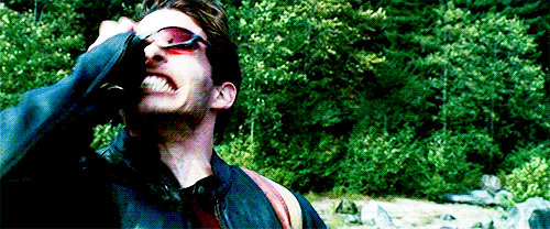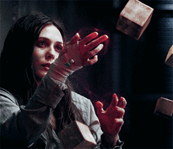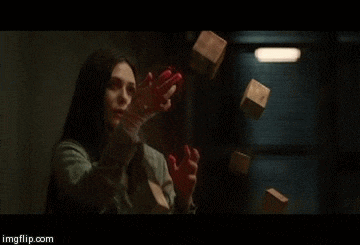 Did you see the star pentagram in the second gif? Classic. I'm sure some of you have caught on by now, but you can clearly see how Cyclops and Phoenix (Jean Grey) have kind of been combined to create the movie version of Wanda Maximoff. Her powers literally are a combination of both of theirs. The reddish energy is an extension and representation of her telepathy and telekinesis. Any time she is exuding that energy, it is really her mental powers. This is VERY similar to what the Phoenix effect of Jean Grey does in the comics. However, in S.W.'s case, it is a red energy that looks very much looks like Cyclops' optic blasts. The movie version of Scarlet Witch is clearly a combination of Cyclops and Jean Grey in terms of her powers. Her telepathy and telekinesis is like Jean Grey's, and it is expressed through red energy that looks exactly like Cyclops' energy blasts.