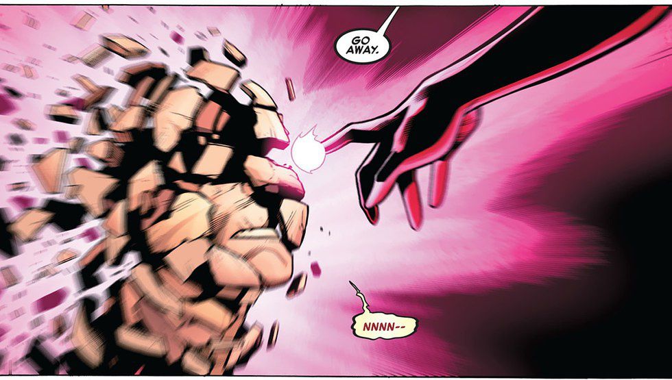 Here, S.W. is manipulating reality to banish Phoenix-possessed Cyclops away like a "Star Trek" matter transport machine ("Avengers vs. X-Men") :