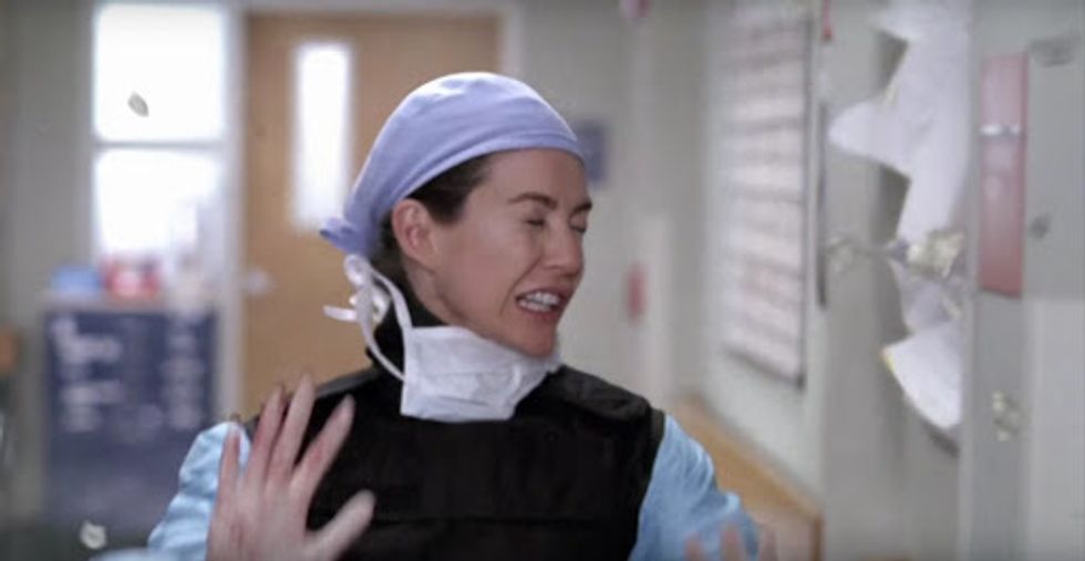 She put her hand on unexploded ammunition. You all know these episodes. The infamous two-part, code black bomb special. After a mishap with a bazooka, a man was taken to the hospital in an ambulance. Hannah, one of the paramedics, is seen with her hand inside the man's body cavity. She placed her hand inside in an attempt to control his internal bleeding. Alex realized after talking to the patient's wife that there was an unexploded bomb inside of his body, and Hannah was actually holding the bomb in place, preventing it from going off and killing everyone nearby. Out of fear, Hannah removed her hand from the body and ran out of the OR. In a fight or flight moment, Meredith put her hand on the bomb. Obviously, she didn't die because this happened in season two and the show is now on its sixteenth season. But she came awfully close, especially because Dylan from the bomb squad died seconds after leaving the OR with the bomb in his hands.