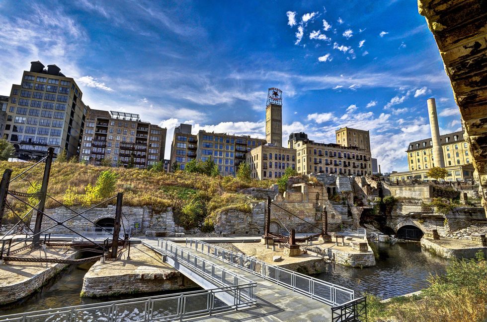 Located in Minneapolis, MN this park "combines an exploration of the history of Minneapolis with present day activities for all ages. " It has multiple biking and walking paths as well as beautiful views of the city. It is near the Stone Arch Bridge, The Gutherie Theatre, and St. Anthony Falls. Also," with the reopening of the historic tailrace canal, which carried water from the mill turbines back to the river, visitors have the opportunity to interact directly with an exciting water feature!"