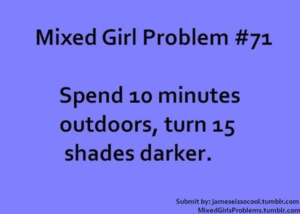 As I got older, I became more aware of my mixed ethnicity. My siblings and I are an odd mix of what's running through our blood. My older brother and I, the two middle kids, take after our mom, with darker hair and skin. Our older sister and younger brother take after our dad's side. They have lighter skin and were born with red/blonde hair. Yeah.