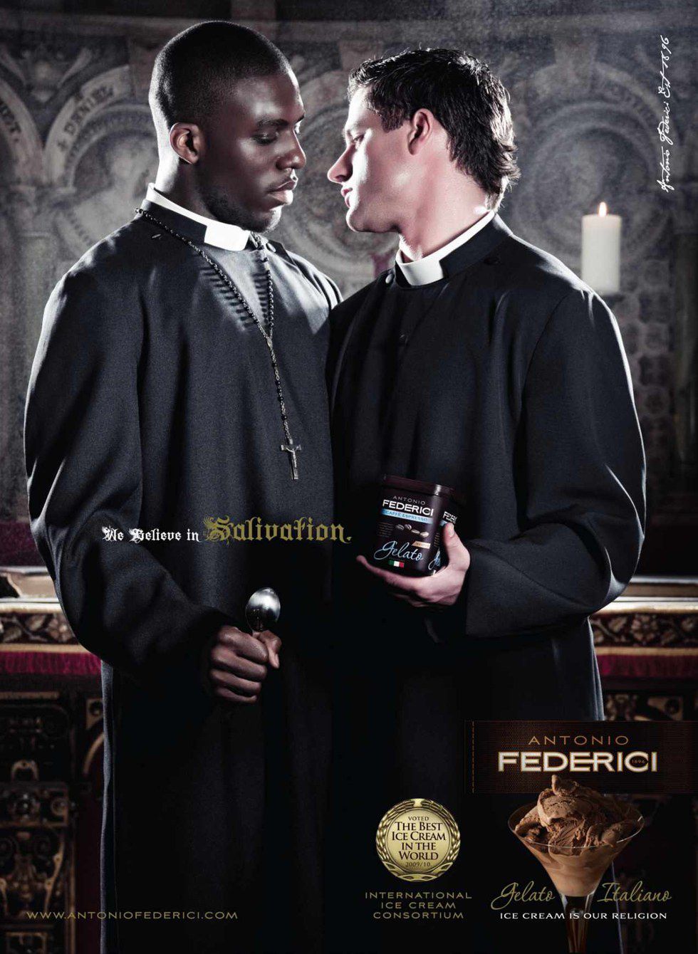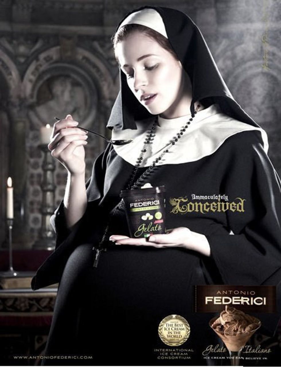 I mean, the best we can say is that props to this ad for being so thoroughly inclusive. They clearly realized they were offending a huge percentage of their customers and the entire Catholic church and decided to cover the rest of their bases by showing they are accepting of all sexual orientations and races. I can also offer 10/10 for creativity, because it's a rare person that connects illicit sacrilegious sex to eating ice cream, and then actually follows through with that thought, as if it might actually be a good idea. I once had a dream that a gay llama tried to sell me hair extensions, but I didn't go and try to make a commercial out of it. Frankly, I wouldn't touch this ice cream after this ad for fear of being struck with lightening from the heavens the moment I whip out a spoon, and no ice cream is worth being smote for.