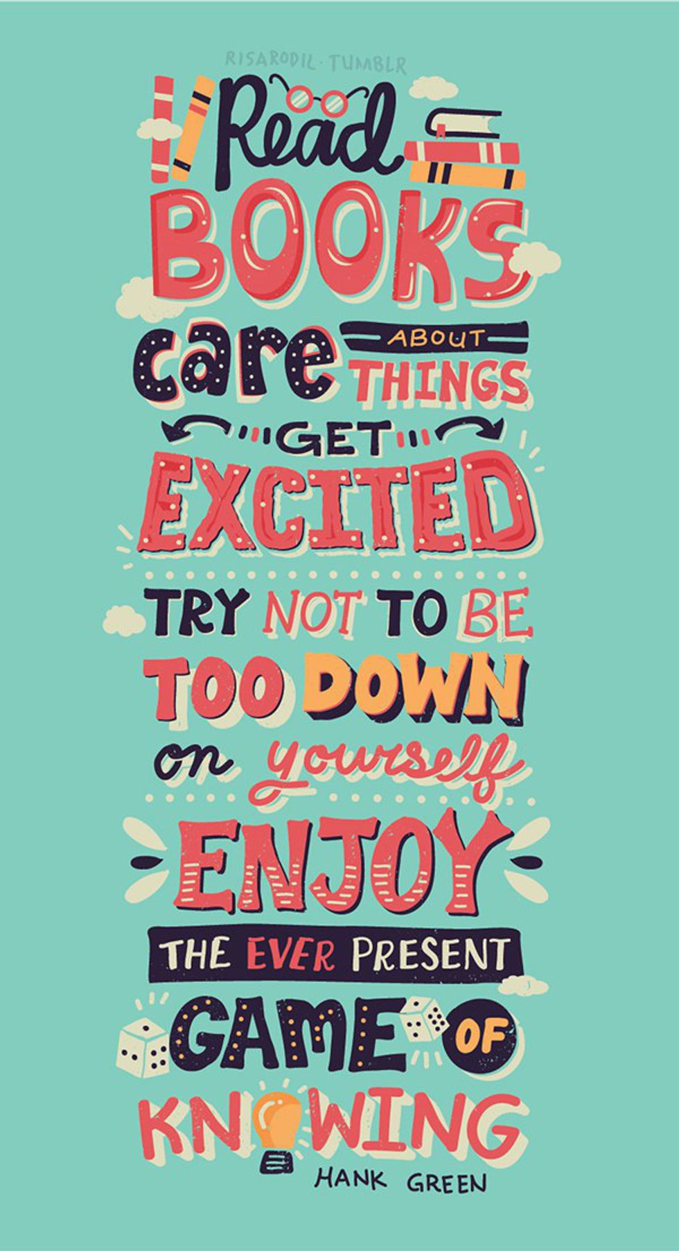5. "Read books. Care about things. Get excited. Try not to be too down on yourself. Enjoy the ever-present game of knowing." –Hank Green
