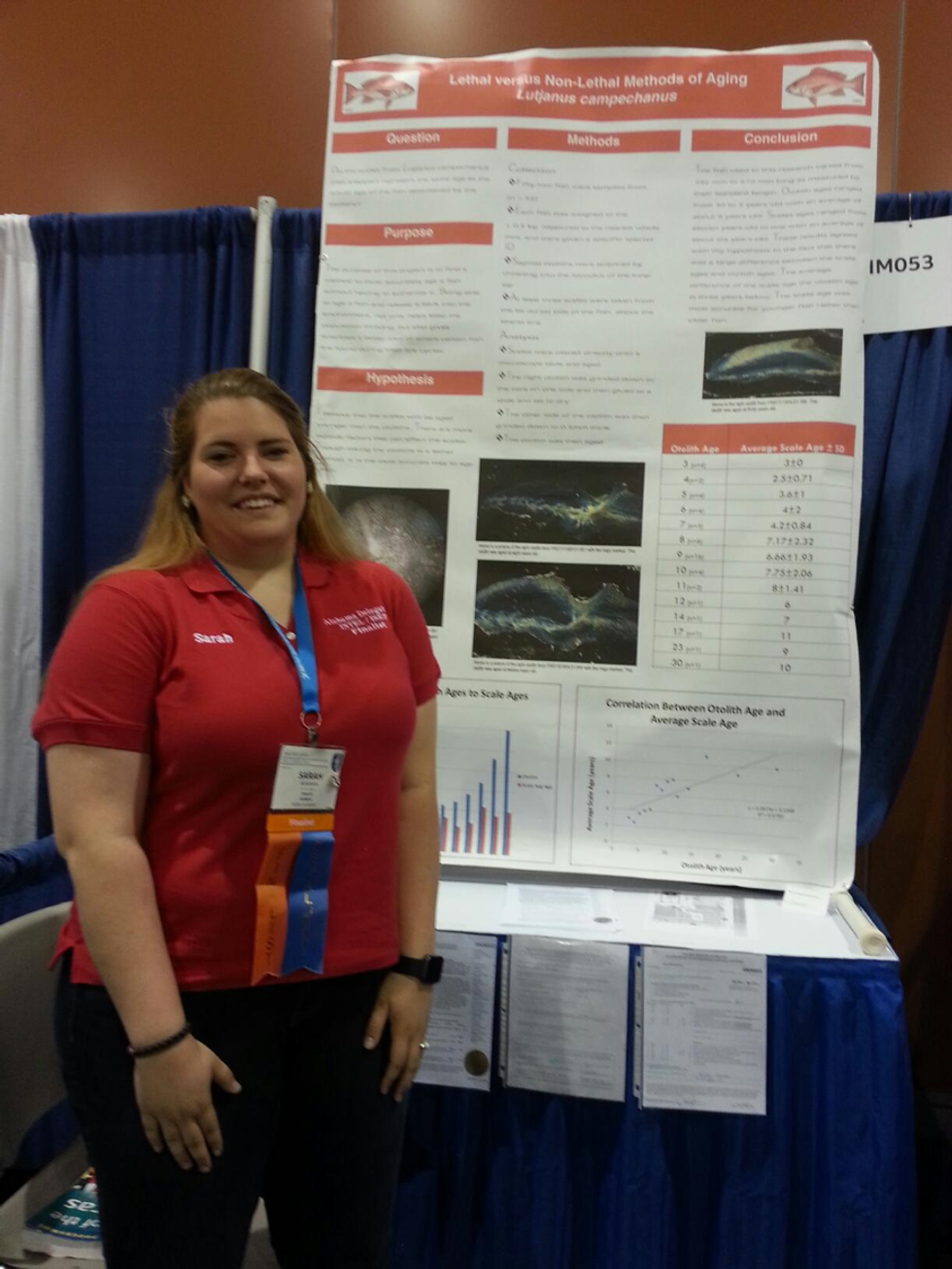 Sarah’s project involved the analysis of scales of red snappers compared to their otoliths. The extraction of the otoliths are lethal while the extraction of the scales are not. This project allows for a better method of aging the fish without euthanizing them.