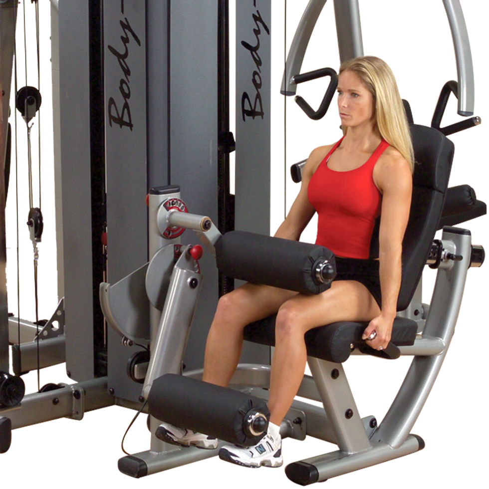 Leg extension: 2 sets x 10-15 reps. Find the leg extension machine at the gym. Sit down and adjust seat accordingly. Use your quadriceps to extend the weight to the maximum point. Lower the weight back to the position you started in, slowly.