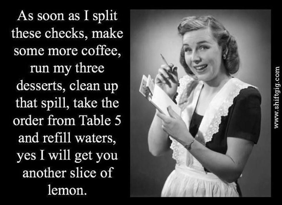 3. If you waitress you can convince yourself you're working out because you're doing so much.