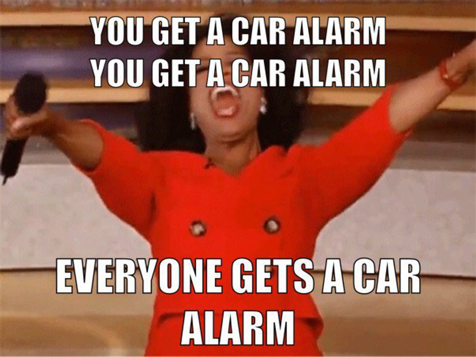 It's two in the morning. You're either dead asleep, studying for a test, or deep in a Netflix (and chill? maybe?) sesh. And it happens...A CAR ALARM GOES OFF. And keeps going. And going. It's like the Energizer Bunny got inside some kid's Acura and refuses to sleep. But shoutout to campus police for finding a way to silence those things. Not sure how they do it, but the boys in blue come in clutch when it comes to car alarms. After one car alarm goes off, it's probably triggered the alarm of some other kid's car nearby. It's like the domino effect, but loud, and it makes you want to smash a windshield.