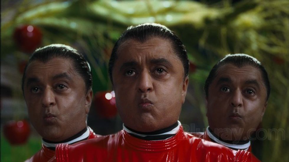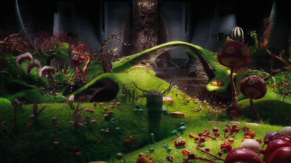 Charlie: Who do you get to try and match the songs in the Wonka version? Well, how about Danny Elfman (composer of The Nightmare Before Christmas and Corpse Bride)? Well, the approach he made was actually clever. The songs don't appear until the kids get to the factory, and they're only sung by the Oompa-Loompas. However, they always take on a different genre with every song they sing. From a 50's Mambo to an 80's Rock tune, the delivery was entertaining. Still, the songs in this movie are short and pretty forgettable... Unless if you're talking about "Wonka's Welcome Song," which made my ears bleed!