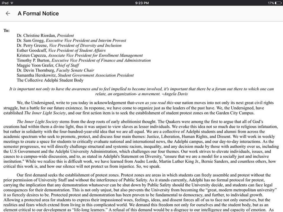 One of the tenets of your argument is that there is no protection for protesters on campus. Theoretically, protests could be shut down and students are vulnerable to legal consequences.