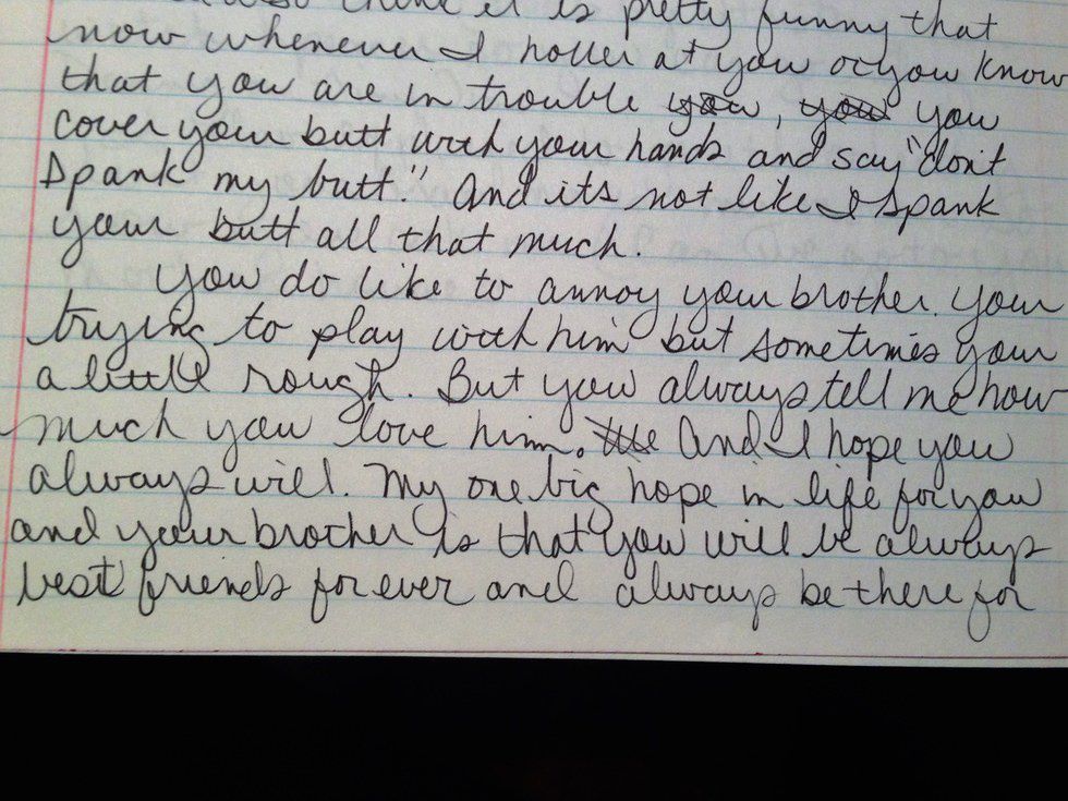 But you didn't make fun of me when I tried to be a hockey player. You let me steal your sweatpants. You'd go exploring. You let me be one of the guys. You kept my notes and letters. You never held my mistakes against me. You were so patient with me. You are my other half.