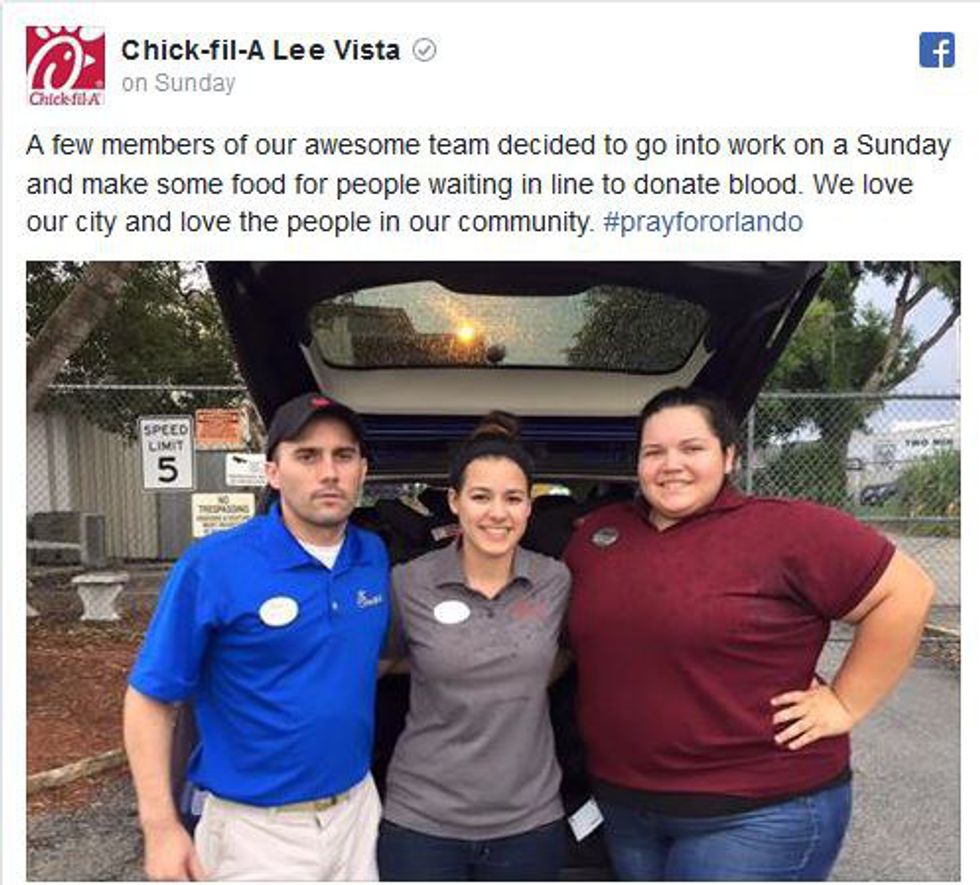 2. Chick-fil-A opened on Sunday to support Orlando's victims.
