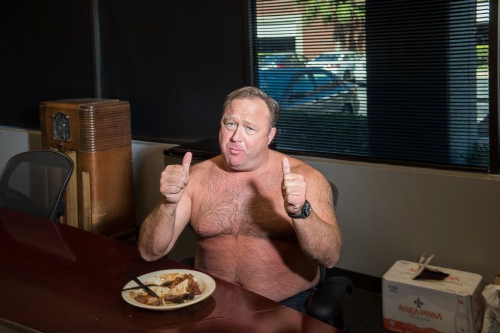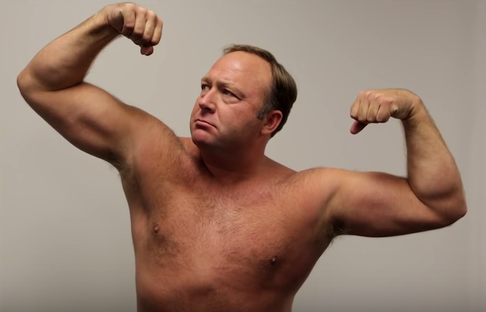 Alex Jones takes his shirt off when talking about Illuminati killers