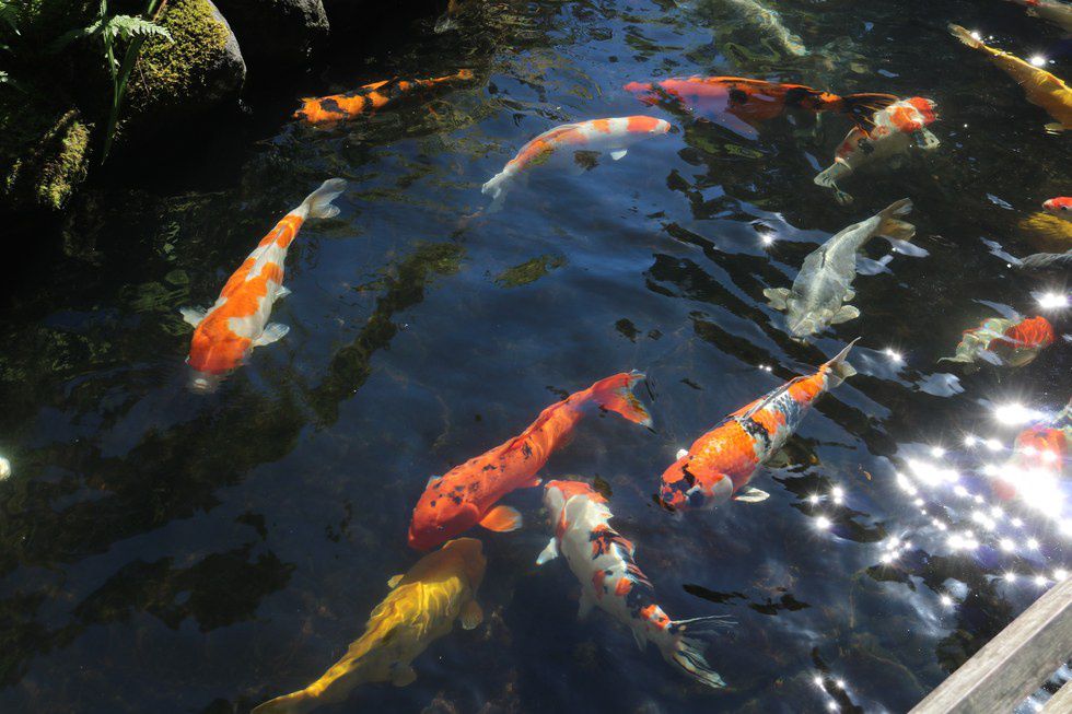 All I can say is: so many koi fish, so many colors. The brightly colored koi swam to the top of the pond making it entertaining to watch.