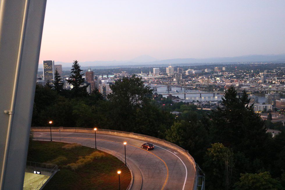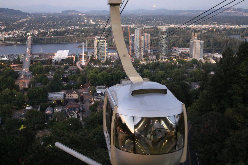 Portland Aerial Tram. It's actually not as scary as it looks. We got lost finding the location of the aerial tram and because of that, we got on it near sunset. It was perfect. We were able to see the Portland skyline while the sun was setting and it was one of the most beautiful things I have ever seen...500 feet up in the air.