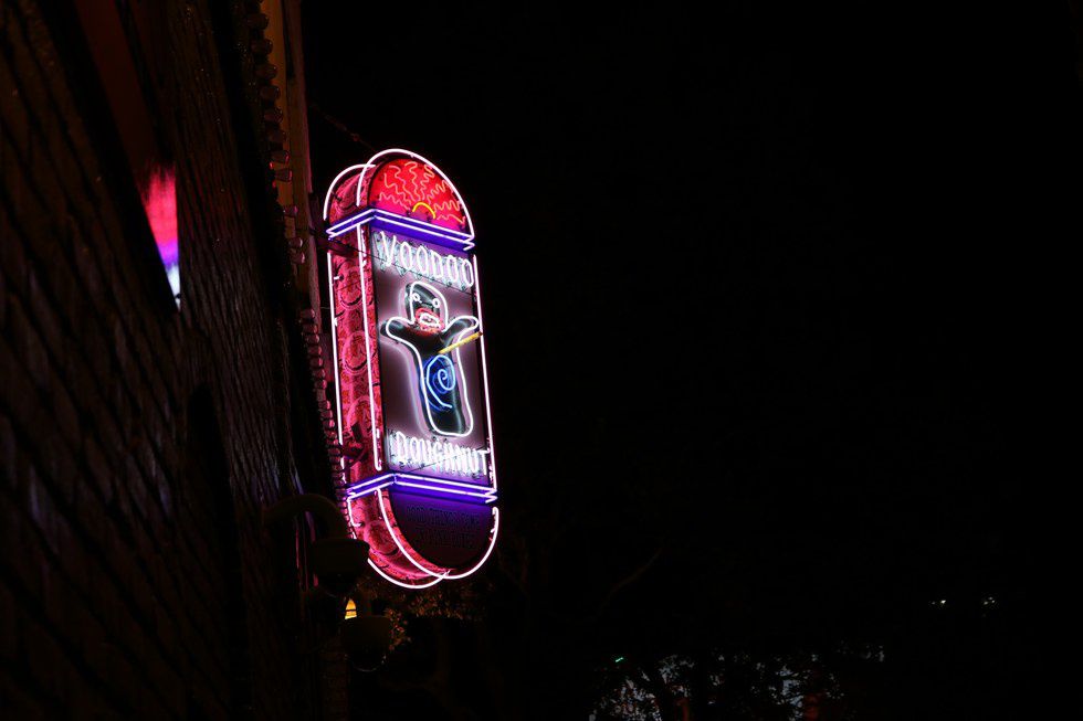Voodoo Doughnut Sign. I don't think i've ever waited so long for some doughnuts in my life. It was worth it, I left with a box full of donuts.