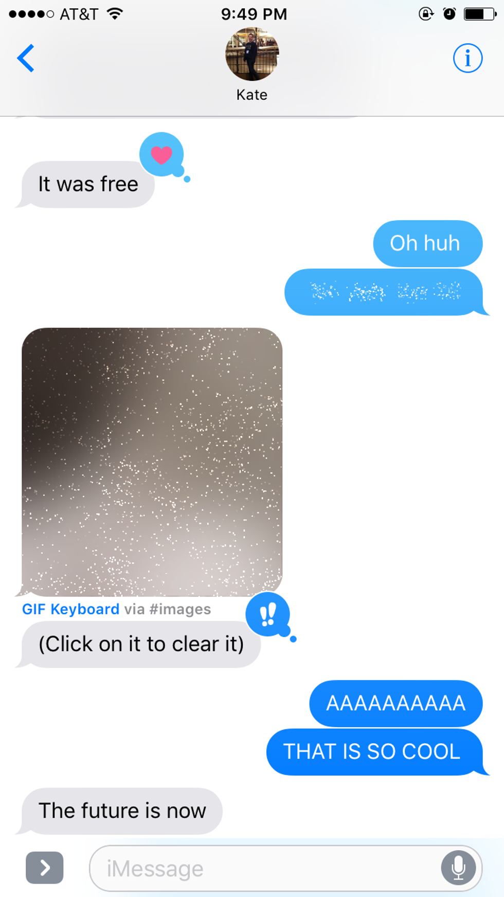 Yes, the emojis have changed; I haven't decided if I like them, but we will just have to deal. To everyone with their panties in a wad about their "text message Second Amendment rights" stop. Sending a link sends it with a preview, sort of like what you see on Facebook. You can even send someone a handwritten message just by turning your phone to the side as long as portrait lock is off. Digital Touch Messages are the best part of iOS 10. You can send sketches, taps, fireballs, kisses, heartbeats and heartbreaks as Digital Touch Messages, and it's honestly just a lot of fun. Message comes with a built-in GIF keyboard #images, just like GroupMe, and it automatically uses the words in your previous text message to find GIFs that match the topic. You can send someone previews of your recently listened to songs using the built-in Music widget and Vemno and Buzzfeed have widgets for Messages now as well. You can buy stickers from the App Store to attach to messages, and everyone from Disney to the World Wildlife Fund has sticker options.