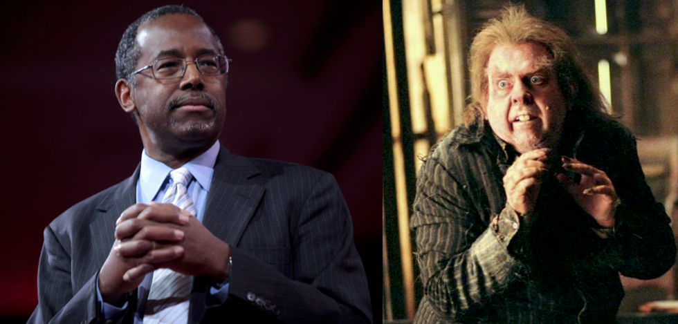 He says odd things and is generally mistrusted. He lied about killing people years ago, only in Pettigrew's case he's the one that did it. We're not convinced Ben Carson isn't also someone's pet rat.
