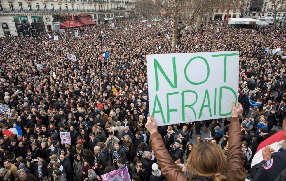 For 12 hours on Saturday, I joined the trend and changed my profile picture to a French flag. I believed that although this action would have no direct impact on the tragedy happening on what seemed like the other side of the world, I was a part of something bigger. I believed that I was a part of a movement that was showing Paris that we were on their side. And I was. Even if they never saw it, I felt like this was my way of being like the woman in the picture above from the Charlie Hebdo protests in January. My profile picture was my sign to the world that I am "NOT AFRAID."