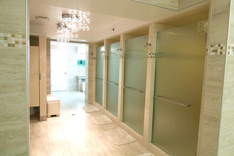 Big. Clean. Great water pressure. Lots of mirrors and great lighting. Not to mention, you only have to clean up after yourself. So as long as everyone acts like responsible, decent people, it's a wonderful experience.