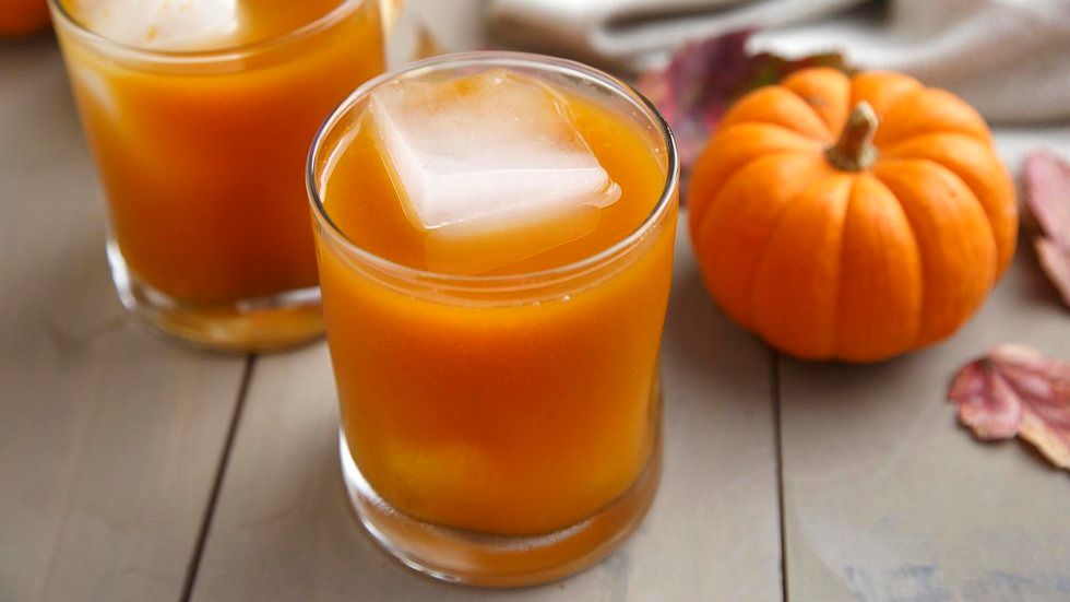 If you're a fan of both pumpkin and sangria, then this alcoholic pumpkin-flavored drink is the drink for you. With white wine, maple syrup, pumpkin spice liqueur, and a tropic juice blend, you'll get the perfect combination of fruity sangria and spicy pumpkin.